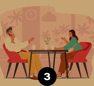 Une première prise de contact par téléphone ou via notre formulaire. Je prendrai le temps d’échanger avec vous, pour ensuite envisager un rendez-vous sans engagement. Confier sa vie sentimentale n’est pas une chose facile, rien ne vaut une rencontre avec sa conseillère en relation humaine dédiée.